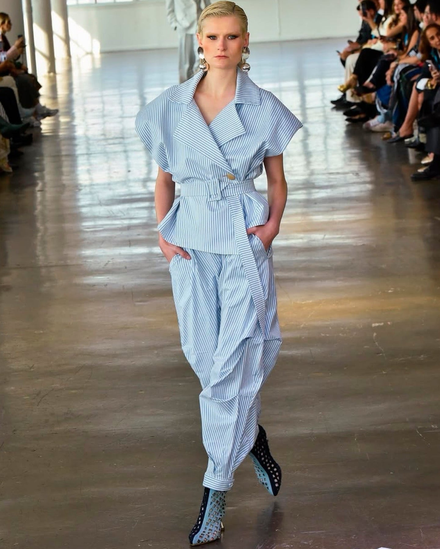 CHALECO CON CINTURON AZUL A RAYAS