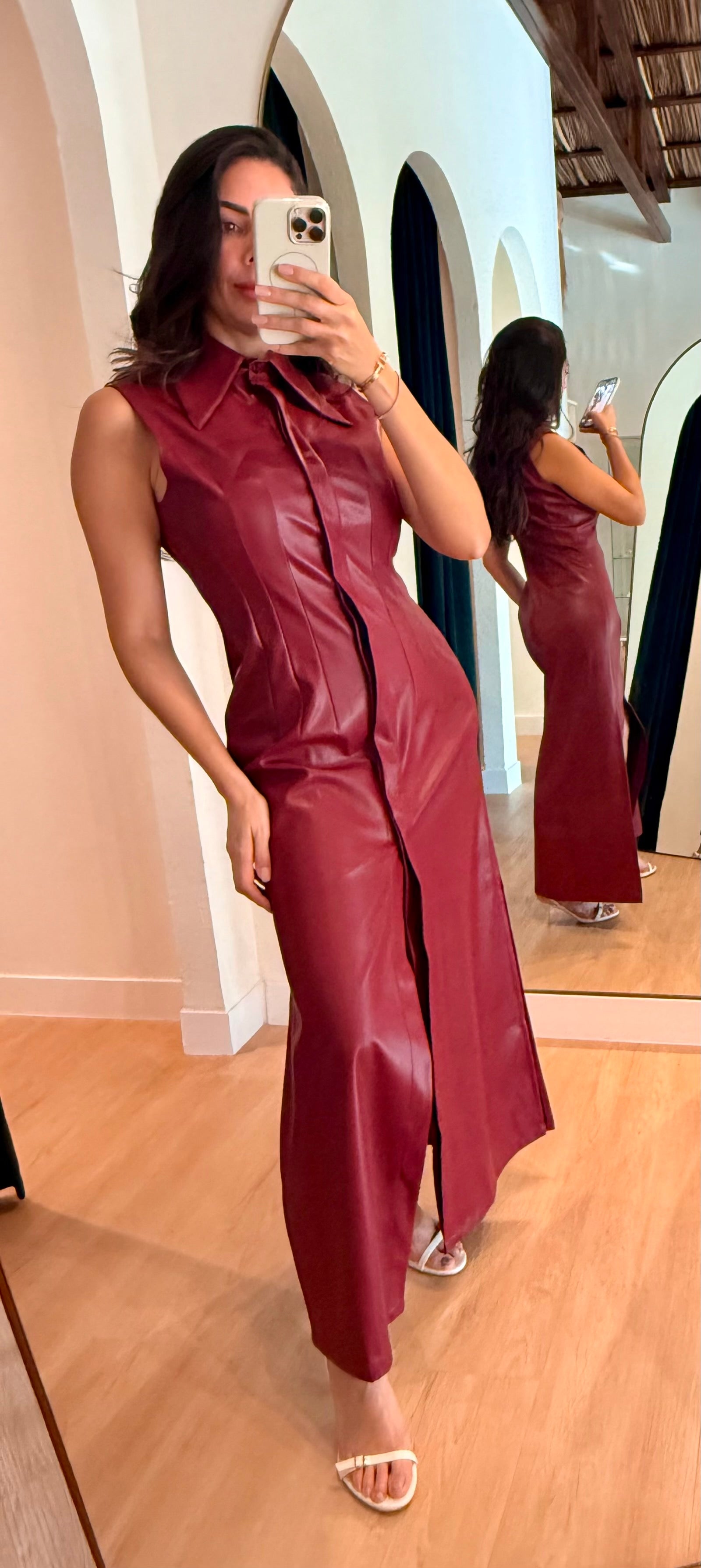 VESTIDO VINO TINTO CUELLO ALTO CAMISERO