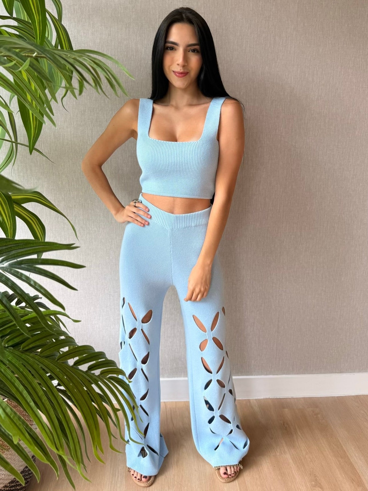 SET CELESTE DE TOP Y PANTALON